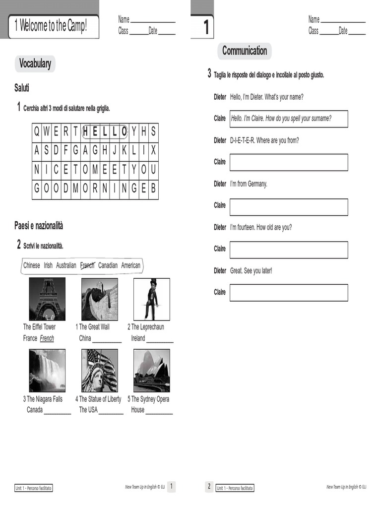 New Team Up In English Tests Pdf Lunch